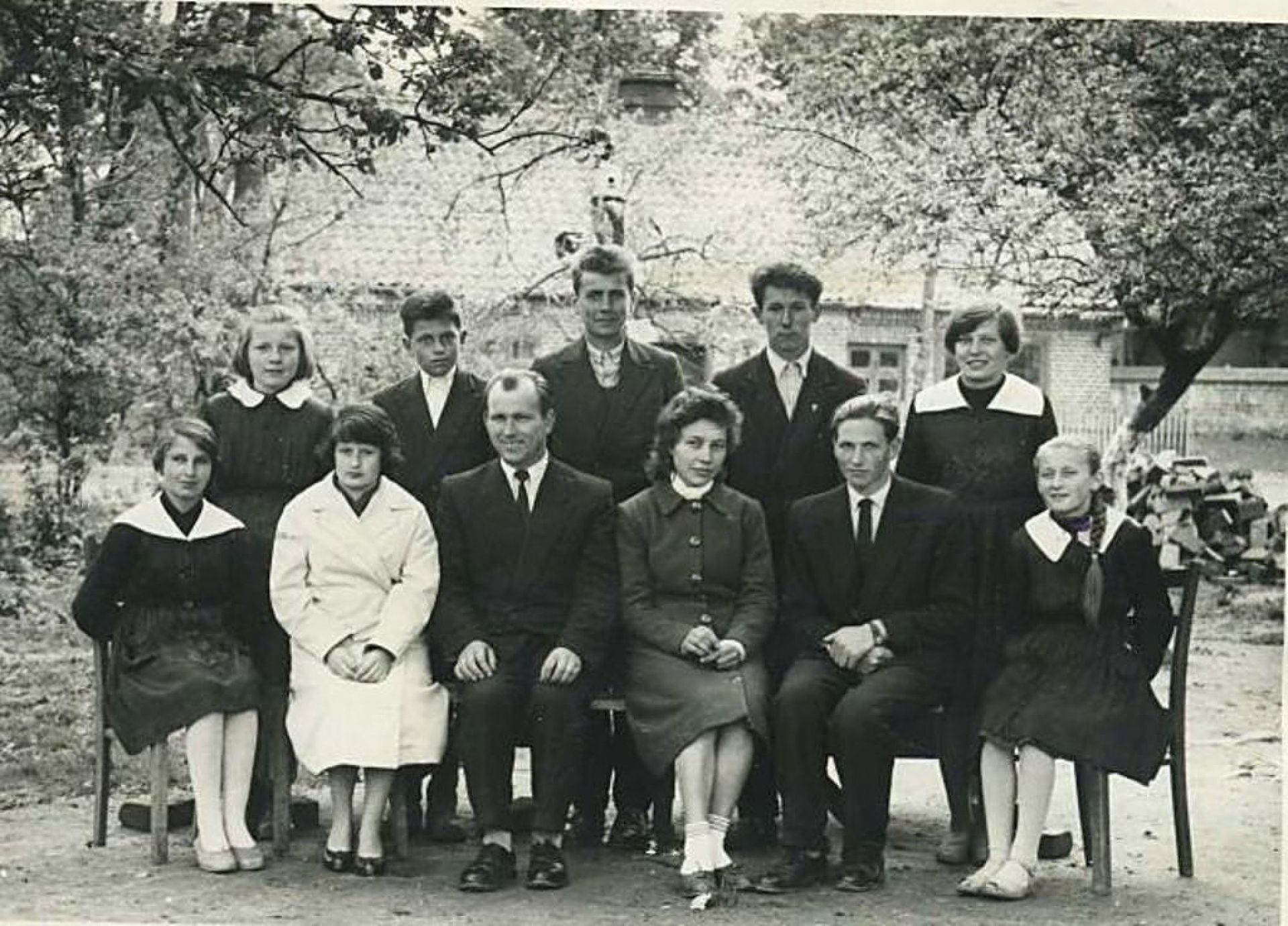 Krystyna Słomiana , (na dole w rzędzie z nauczycielami po lewo) Zofia Walska , Tadeusz Nidzgorski , Józef Dobies , Roman Zalewski ,(Jerzwałd) Mirosława Kobus , Halina Śledzik (na dole w rzędzie z nauczycielami po prawo)